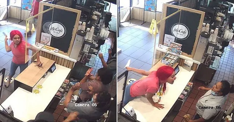 It seems she is explaining that there was a mix-up together with her order on the drive-thru, however fairly than having the error rapidly corrected, the dialog seems to quickly deteriorate with the irate girl quickly seen leaning over-the-counter and shouting in an worker’s face. Though there’s no audio, it’s nonetheless obvious she’s not “lovin’ it” as she verbally abused the workers, in accordance with witnesses.