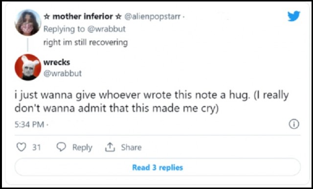 According to Newsweek, “Megan King shared two special photos with her Twitter followers in a now-viral tweet with more than 600,000 likes. The first is a picture of a handwritten note she’d received with her tip. The second is a picture of her reaction to the note, which shows King smiling and in tears.”